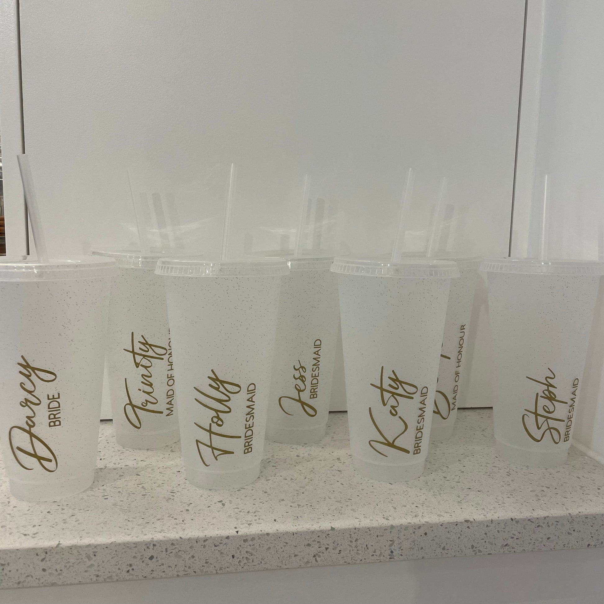 Our signature cold cups in "glitter". These are the perfect accessory for hen parties and creating themes.