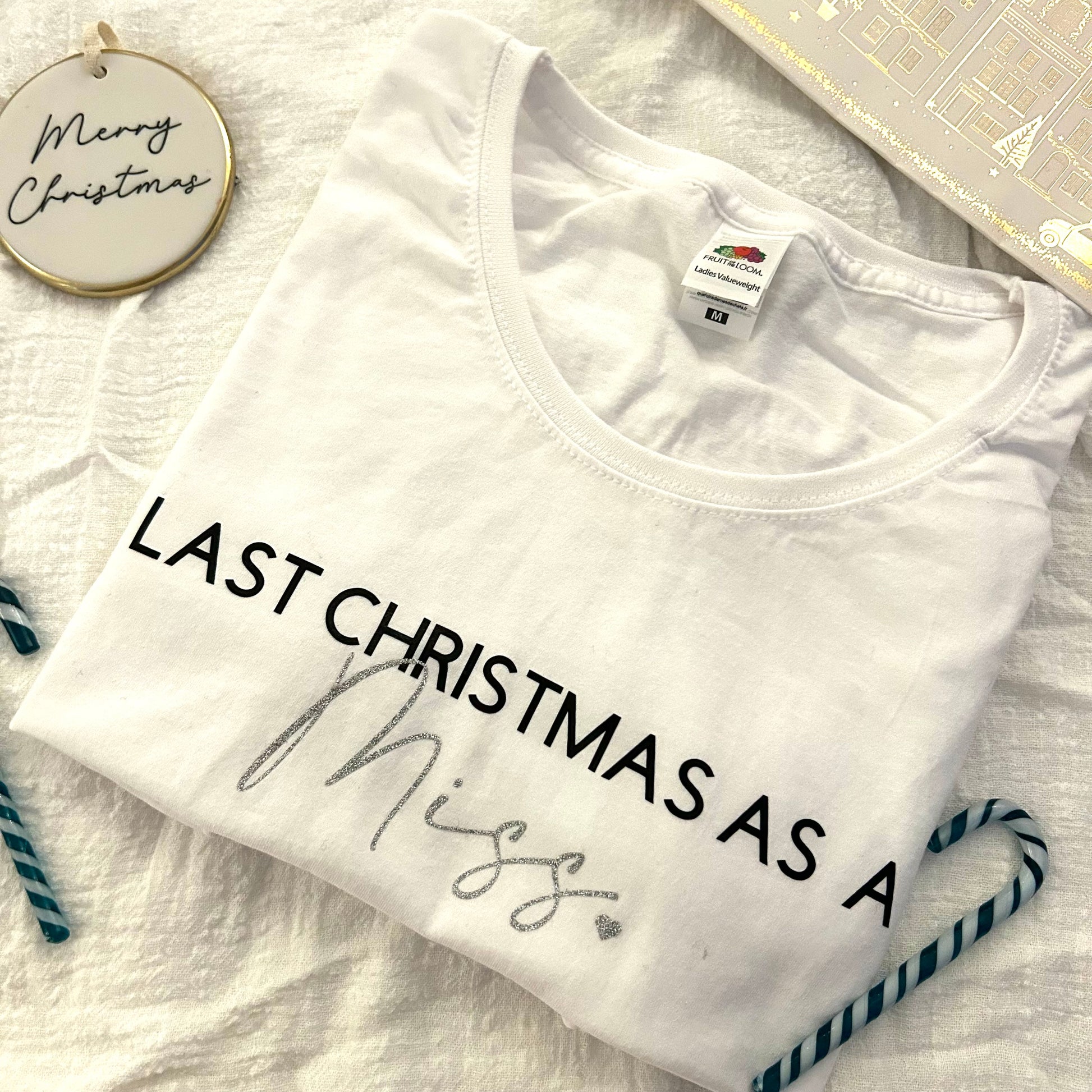 Our personalised Christmas tees are back for another year! Celebrate your last Christmas as a miss with our personalised tees. The perfect gift for a bride to be!