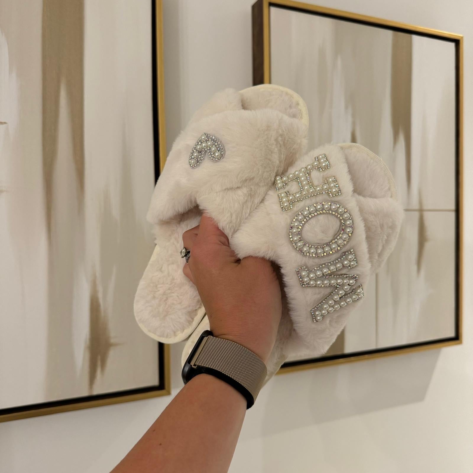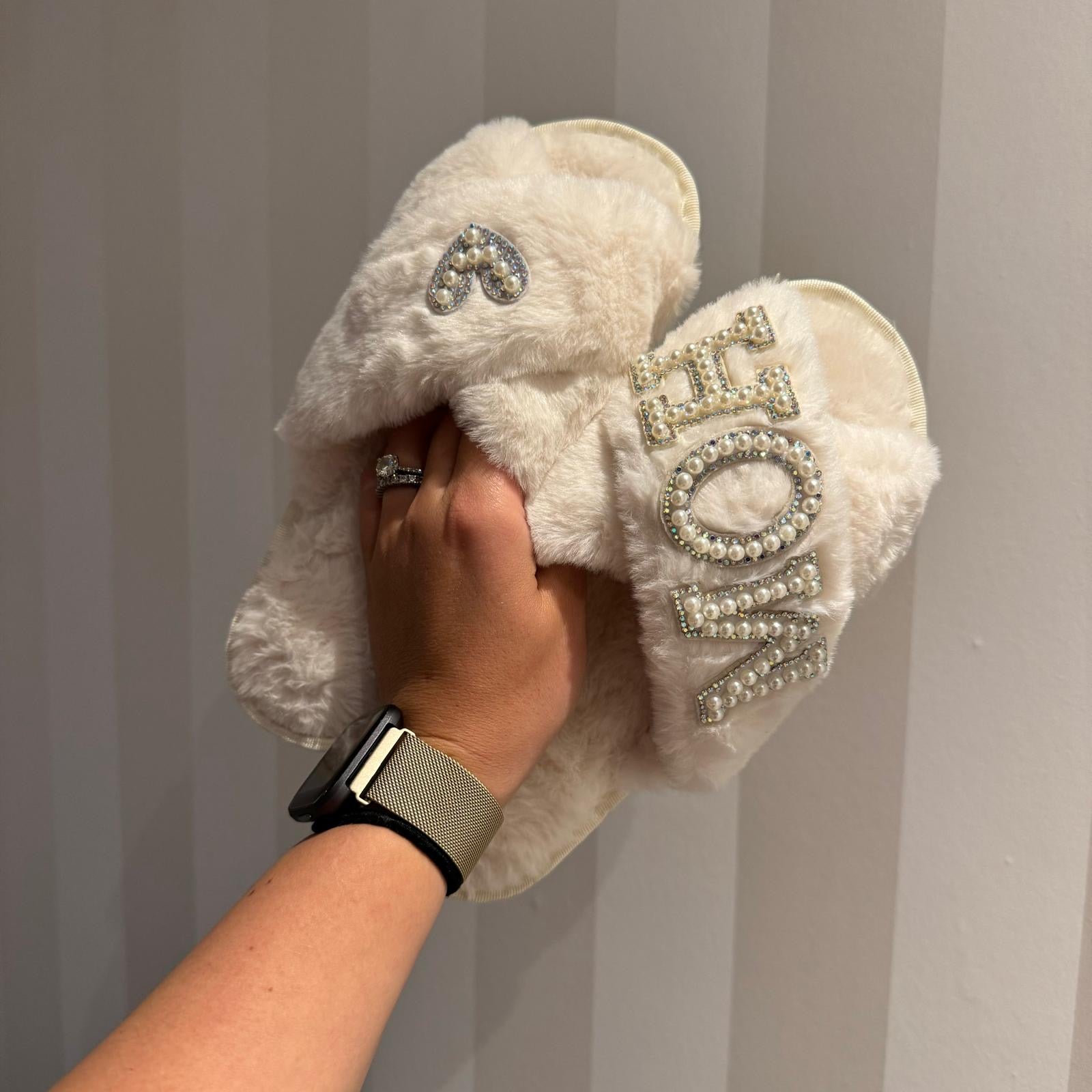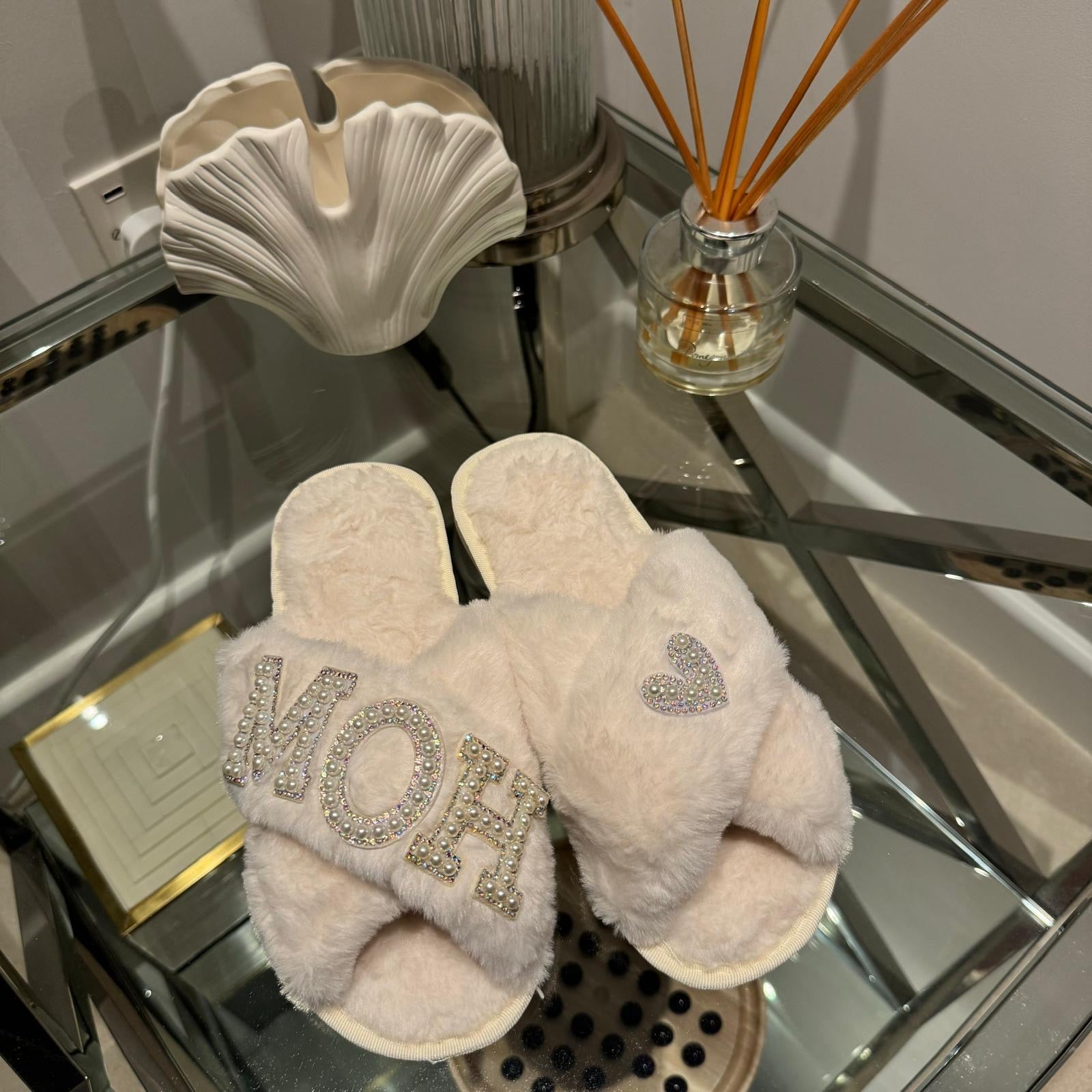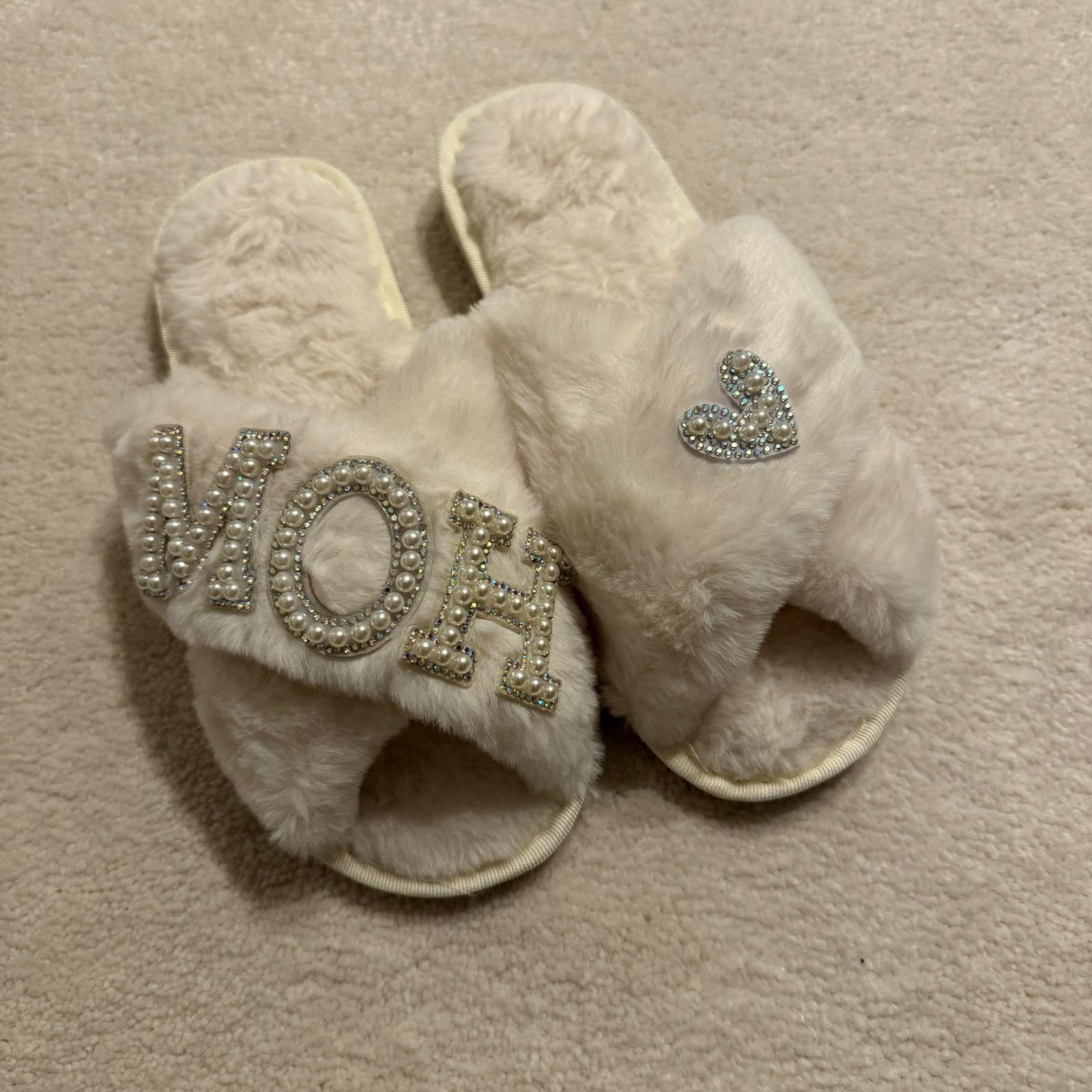 Our signature "MOH" slippers with gorgeous pearl & diamante patches