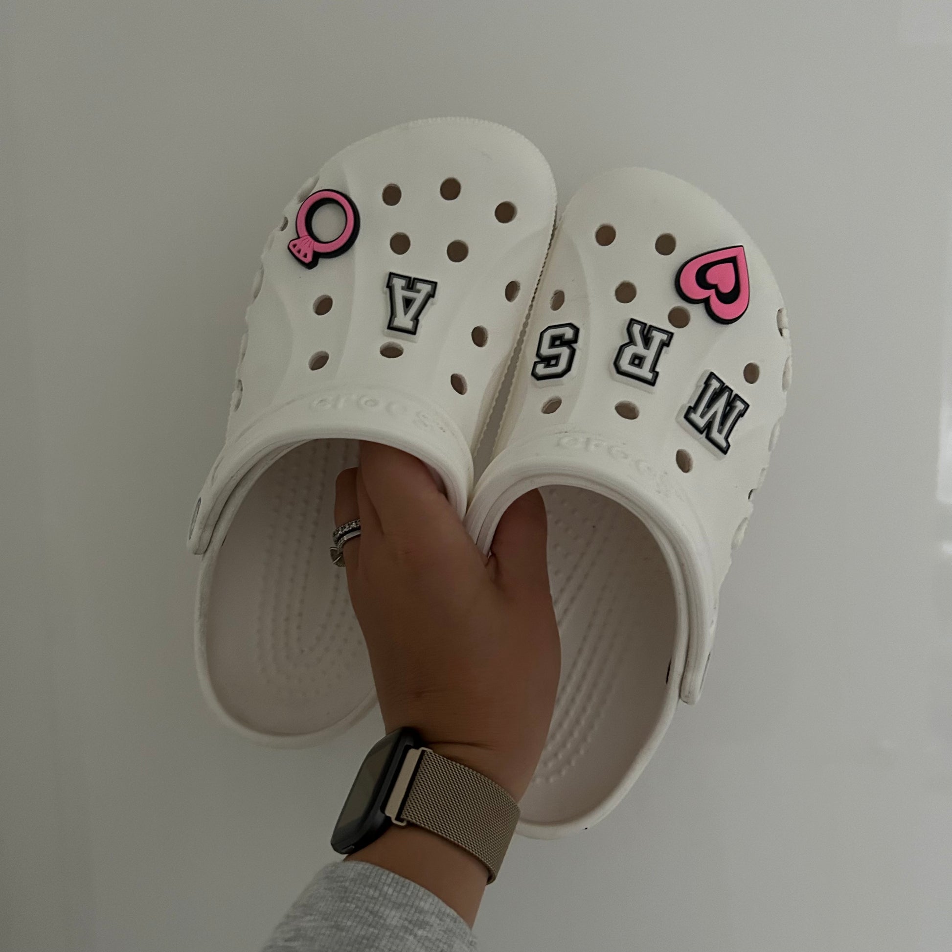 Add a little bit of bridal to your crocs with our "Mrs" charms. Perfect for hen parties, weddings & honeymoons