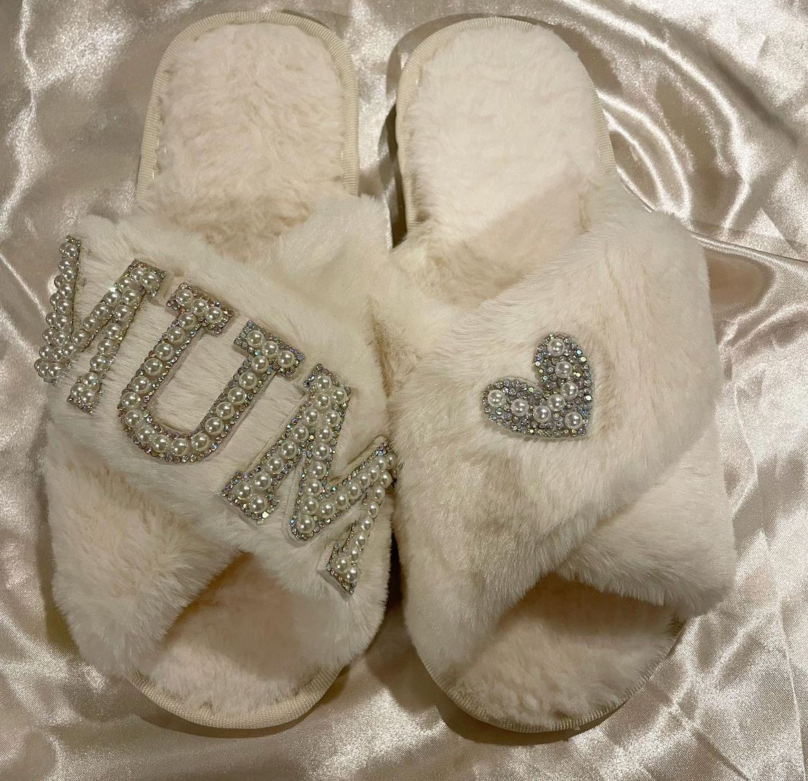 Our signature "MUM" slippers with gorgeous pearl & diamante patches